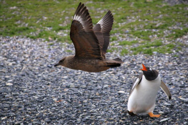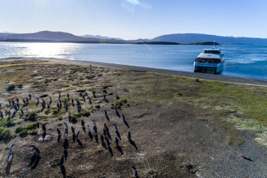 Continuando, navegaremos hacia el Este disfrutando de los maravillosos paisajes del canal y las montañas que lo rodean, allí divisaremos sobre la costa Argentina Puerto Almanza y sobre la costa Chilena la Base Naval Puerto Williams, y luego llegaremos a la Isla Martillo donde tendremos la oportunidad de ver una colonia de Pingüinos Magallánicos y algunos ejemplares de pingüinos Papua.